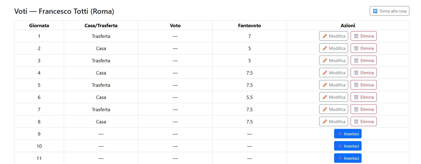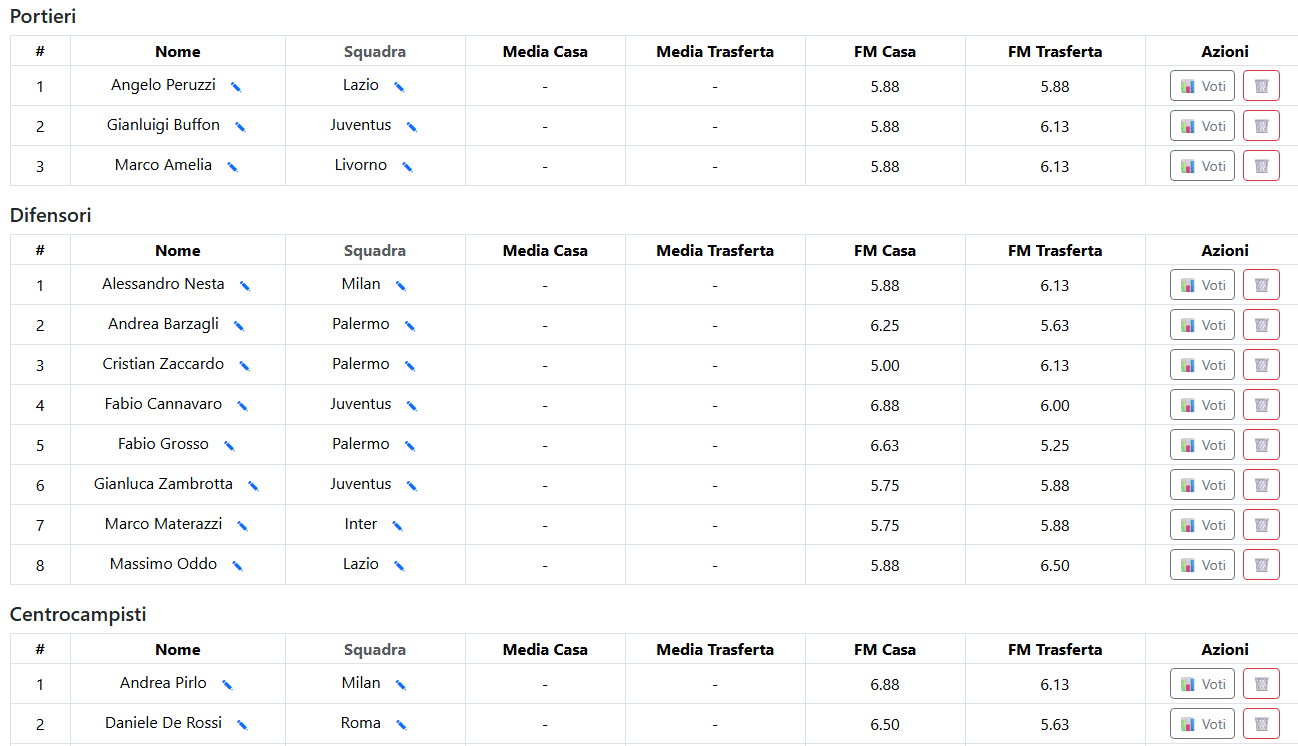 Dalla rosa ai voti: tieni traccia di tutto e genera la formazione ideale in pochi click.